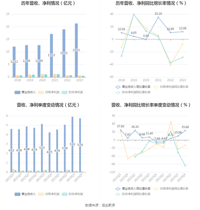 数据显示,2023年公司加权平均净资产收益率为6.18%,较上年同期下降1.15个百分点;公司2023年投入资本回报率为3.96%,较上年同期下降1.60个百分点。