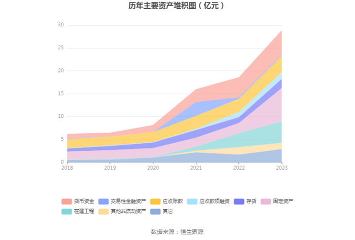 2023年,公司经营活动现金流净额为8832.07万元,同比增长341.16%,主要系收入增长相应的回款增加,以及采用票据池质可银兒押向银行开具承兑支付货款导致购买商品接受劳务支付的现金减少;筹资活动现金流净额5.88亿元,同比增加3.49亿元,主要系发行可转债收到募集资金,以及银行借款增加所致;投资活动现金流净额-6.03亿元,上年同期为-4871.46万元,主要系本期购建固定资产、在建工程的增元以及收回理财产品净额的减少所致。