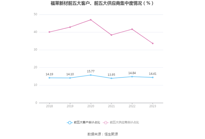 报告期内,公司前五大客户合计销售金额2.87亿元,占总销售金额比例为14.41%,公司前五名供应商合计采购金额5.48亿元,占年度采购总额比例为33.65%。
