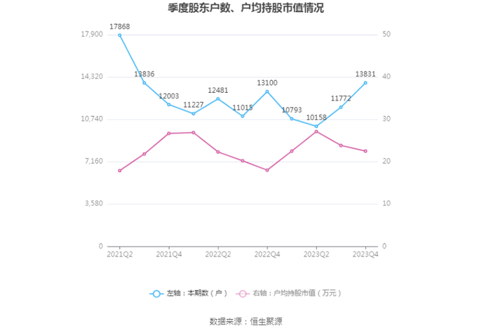 筹码集中度方面,截至2023年年末,公司股东总户数为1.38万户,较三季度末增长了2059户,增幅17.49%;户均持股市值由三季度末的23.87万元下降至22.54万元,降幅为5.57%。