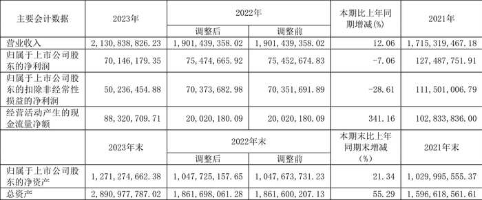 中证智能财讯 福莱新材(605488)3月30日披露2023年年报。2023年,公司实现营业总收入21.31亿元,同比增长12.06%;归母净利润7014.62万元,同比下降7.06%;扣非净利润5023.65万元,同比下降28.61%;经营活动产生的现金流量净额为8832.07万元,同比增长341.16%;报告期内,福莱新材基本每股收益为0.4元,加权平均净资产收益率为6.18%。公司2023年年度利润分配预案为:拟向全体股东每10股派2元(含税)。