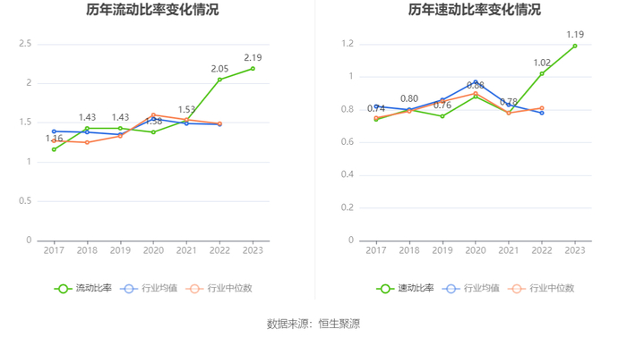 2023年,公司流动比率为2.19,速动比率为1.19。