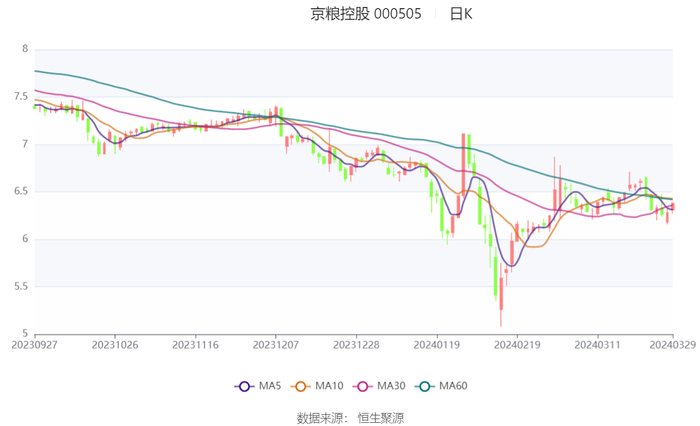 京粮控股:2023年净利润同比下降27.62% 拟10派0.71元