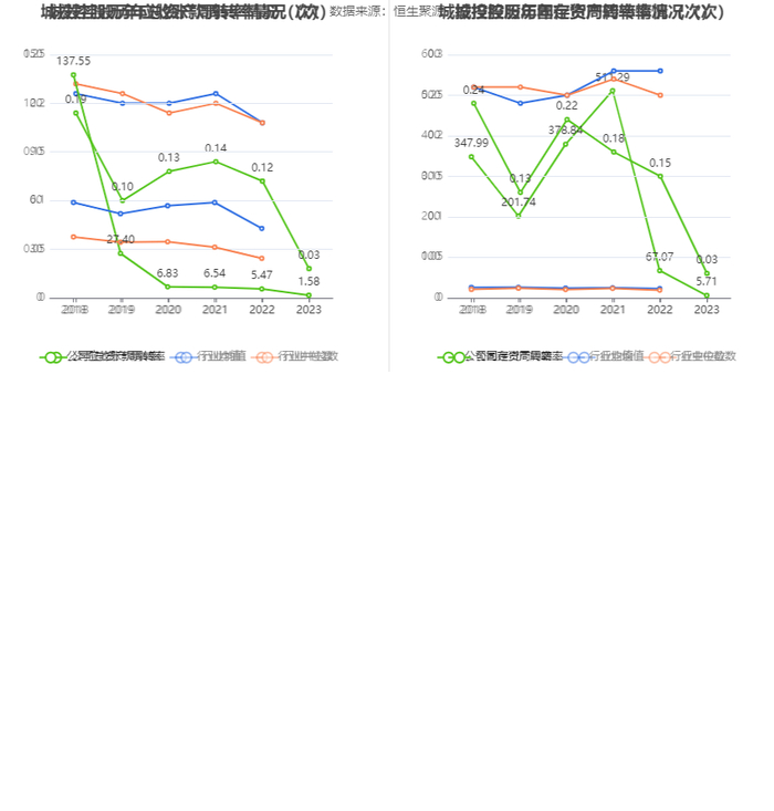 营运能力方面,2023年,公司公司总资产周转率为0.03次,上年同期为0.12次(2022年行业平均值为0.18次,公司位居同行业66/86);固定资产周转率为5.71次,上年同期为67.07次(2022年行业平均值为22.72次,公司位居同行业14/86);公司应收账款周转率、存货周转率分别为1.58次、0.03次。