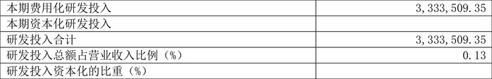 2023年全年,公司研发投入金额为333.35万元;研发投入占营业收入比例为0.13%。此外,公司全年研发投入资本化率为0。
