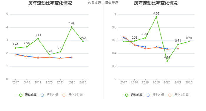2023年,公司流动比率为2.92,速动比率为0.58。