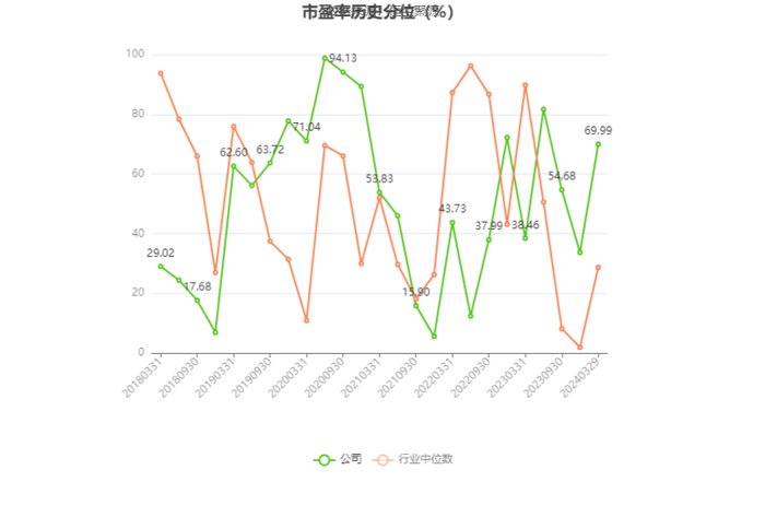 市盈率为负时,不显示当期分位数,会导致折线图中断。