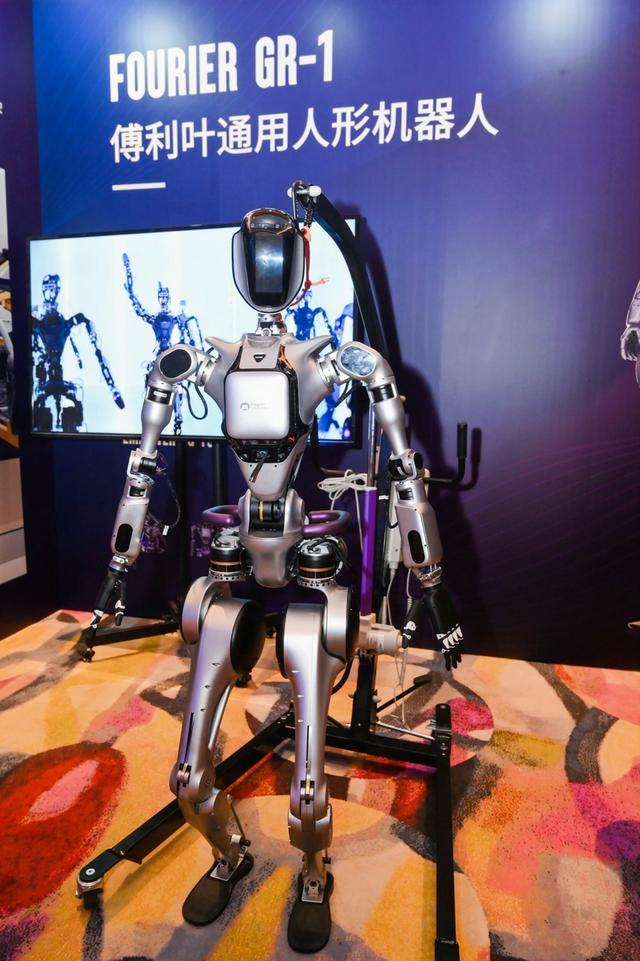 在上海傅利叶智能科技有限公司展台,一台泛着帅气金属光泽的深灰色机器人正在挥动手臂。这款机器人名为GR-1,即“General Robotics”通用机器人的缩写。现场工作人员介绍,目前企业聚焦机器人本体,从硬件结构到运动控制算法都具备了核心技术优势。