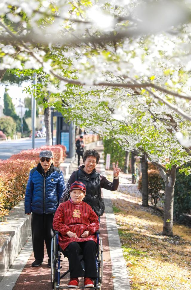 在和煦的春光下,微风清清吹过,粉白娇嫩的花瓣随风起舞,满树烂漫。市民穿行在层层叠叠、粉白相间的樱花大道,枝头摇曳着满树的樱花,让人仿佛进入梦境,也为周边环境和居民出行增添了别样的美丽风景。