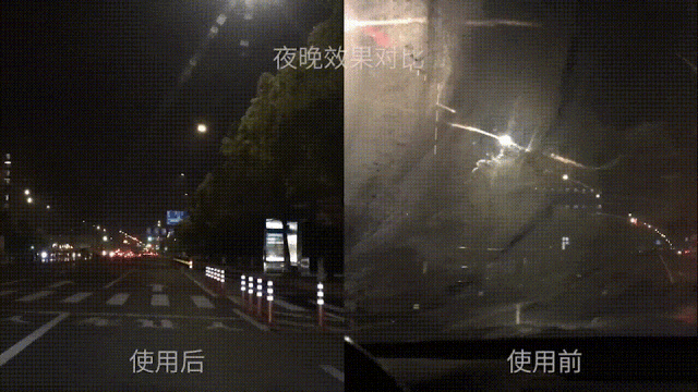 效果对比:使用除油膜剂之前油污炫光严重,清洗过后干净通透,视野开阔!