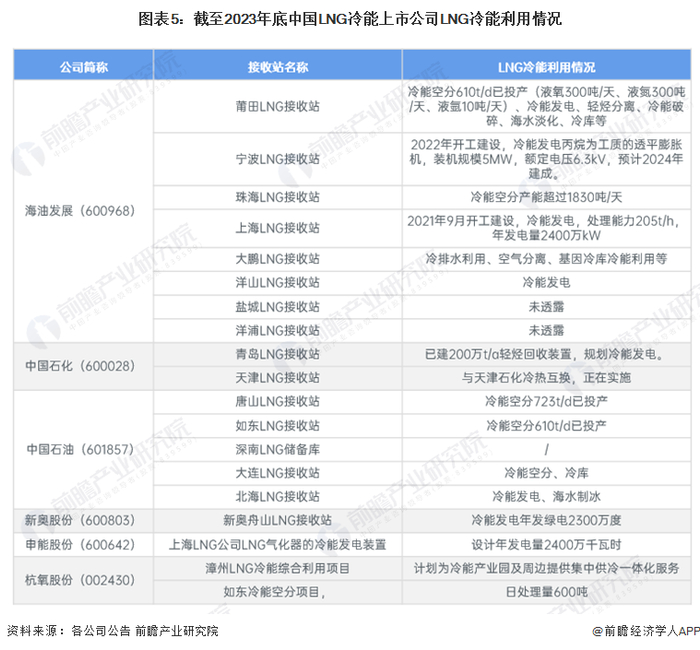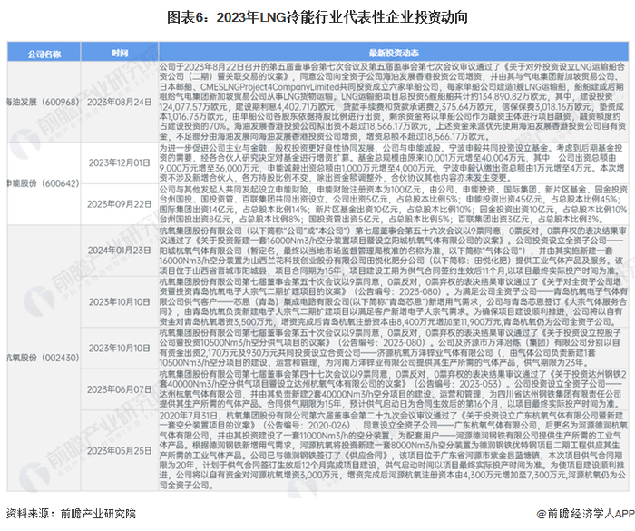 LNG冷能行业代表性企业最新投资动向