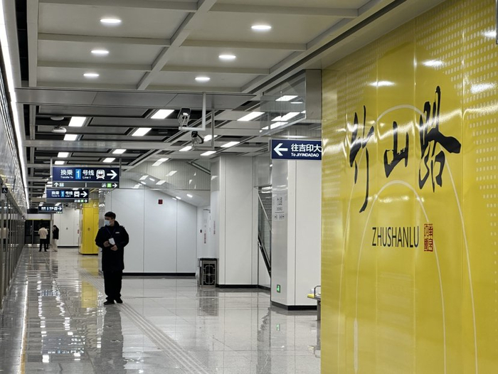 在地铁5号线竹山路站内,记者看到,5号线全线采用“民国风”设计,以灰色调为主,在柱子等处点缀红砖等装饰元素,古朴低调。除此之外,站内首次配备了智能客服中心,可实现购票、查询等多种服务。