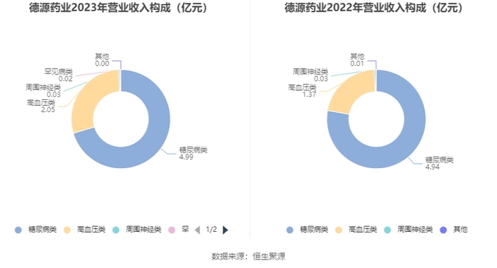 分产品看,糖尿病类、高血压类、周围神经类2023年毛利率分别为77.14%、93.66%、51.96%。