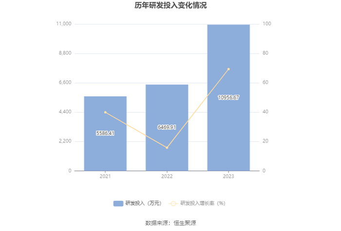 2023年全年,公司研发投入金额为1.10亿元,同比增长69.35%;研发投入占营业收入比例为15.45%,相比上年同期上升5.26个百分点。此外,公司全年研发投入资本化率为0。