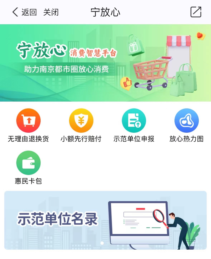 南京是旅游大市,要消除游客购物顾虑关键在于简化跨地区退换货流程。为提升消费购物体验,营造安全放心的消费环境,今年3月,南京创新打造的“宁放心”消费智慧平台正式上线,包括金鹰、新百等在内的50多家商业综合体率先进驻平台,实现了“线下购物线上退”“本地购物异地退”。回去后,游客只需打开“我的南京”App,搜索“宁放心”,即可找到购买店铺所在商圈,填写商品信息后即可便捷申请异地线上退换货。
