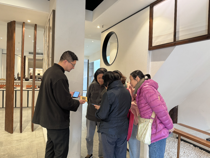 “这里有很多古老的建筑和文物遗迹,店里卖的东西也特别有中国韵味,很是精致养心。”在工艺品店铺“回望六艺里”,来自香港、福州等地的四位游客仔细端详着店铺里的原创茶具、香具,68岁的张女士告诉记者,“我们四个‘老姐妹’接下来还要去扬州游玩,这家店不仅可以免费邮寄,还支持线上无理由退换货,我就果断下单了。”