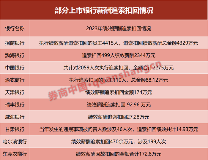 2022年年报中,招商银行、渤海银行、九江银行均首次披露了绩效薪酬追索扣回的具体细节,备受市场关注。