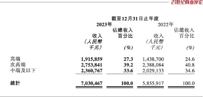 次高端、中端及以下产品,收入则分别上涨15%和16%。