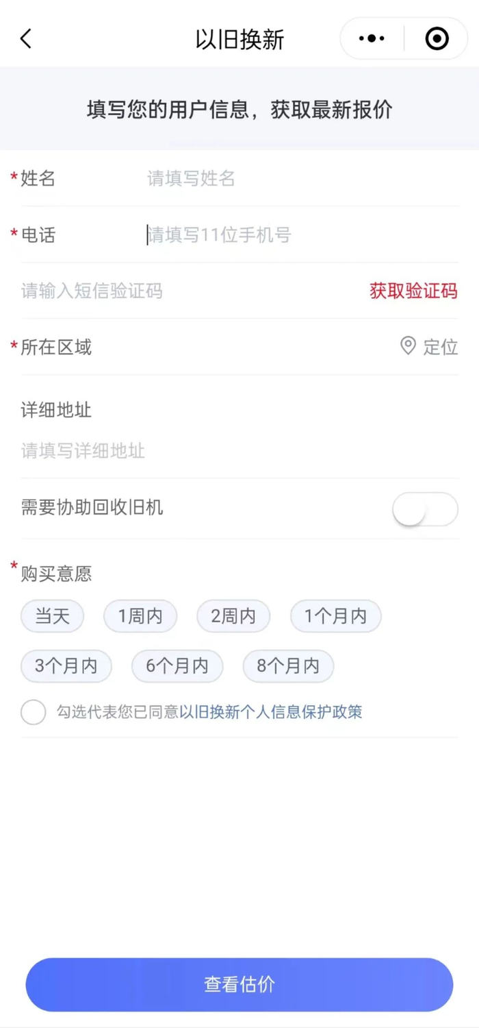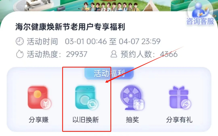 进入首页后,点击“以旧换新”