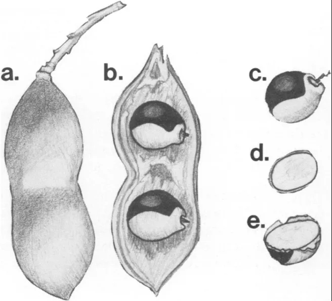 红豆属不一样,它们的种子会伪装成果实的样子,引诱嘴馋的鸟类上钩,进而为其散播种子。它们的果荚开裂后,种子仍然躺着,或者挂在果荚内,种脐连着果荚不放手。红色的种子就这么挂在树上,在棕色果荚的映衬下格外醒目,就像一粒粒果实一样。