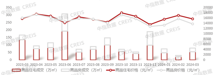 图:2023年3月-2024年3月青岛市商品房/商品住宅成交情况