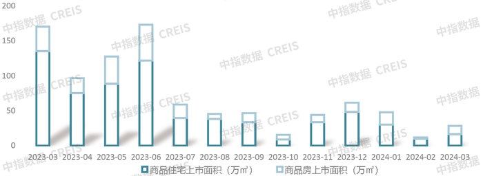 图:2023年3月-2024年3月青岛市商品房和商品住宅供应情况