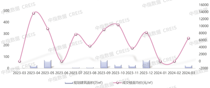 图:2023年3月-2024年3月青岛市住宅用地成交情况