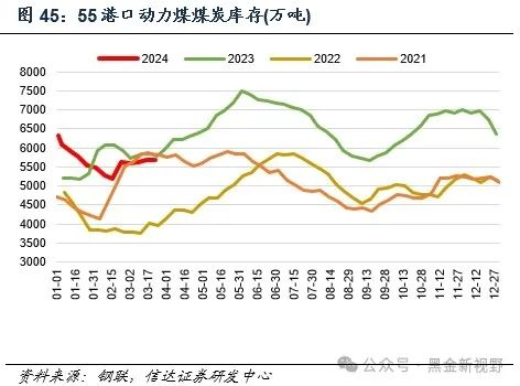 ⚫港口库存:截至3月29日,六大港口炼焦煤库存较上周下降7.7万吨至208.4万吨,周环比下降3.55%。