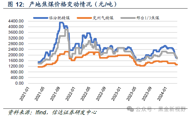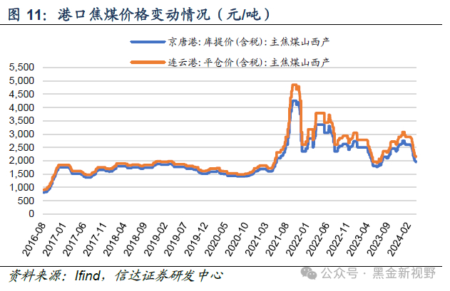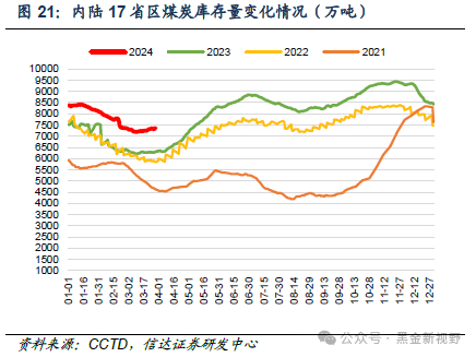资料来源:Ifind,煤炭资源网,煤炭市场网,信达证券研发中心 注:红色点为高点。因数据披露频度、日期不一致,因此按周变动展示。