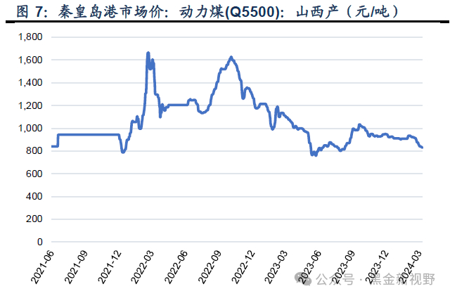 ⚫港口动力煤:截至3月29日,秦皇岛港动力煤(Q5500)山西产市场价830.0元/吨,周环比下跌10.0元/吨。
