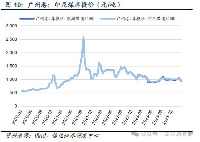 ⚫国际动力煤到岸价:截至3月29日,广州港印尼煤(Q5500)库提价976.7元/吨,周环比下跌19.8元/吨;广州港澳洲煤(Q5500)库提价942.7元/吨,周环比下跌33.9元/吨。