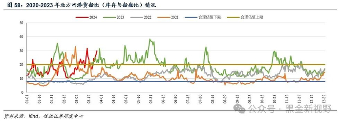 ⚫截至3月29日,环渤海地区四大港口(秦皇岛港、黄骅港、曹妃甸港、京唐港东港)的库存为1388.6万吨(周环比增加85.53万吨),锚地船舶数为78.0艘(周环比增加21.00艘),货船比(库存与船舶比)为15.9,周环比下降11.47。