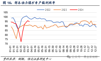 ⚫截至3月29日,样本动力煤矿井产能利用率为95.2%,周环比增加0.3个百分点。