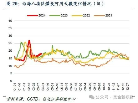 ⚫沿海八省:截至3月28日,沿海八省煤炭库存较上周上升92.80万吨,周环比增加2.86%;日耗较上周下降3.40万吨/日,周环比下降1.79%;可用天数较上周上升0.80天。