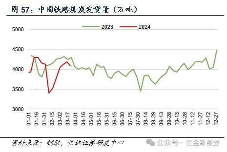 ⚫截至3月22日周五,本周中国铁路煤炭发货量4074.8万吨,上周周度日均发运量4185.0万吨,周环比下跌110.2万吨。