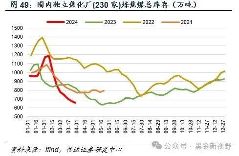 ⚫焦企库存:截至3月29日,国内独立焦化厂(230家)炼焦煤总库存较上周下降15.1万吨至658.8万吨,周环比下降2.23%。