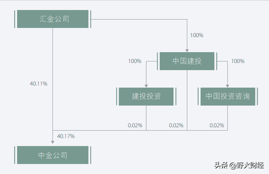 年报披露,中投公司全资公司汇金公司,直接及间接持有中金超过40%股权,为中金的控股股东。