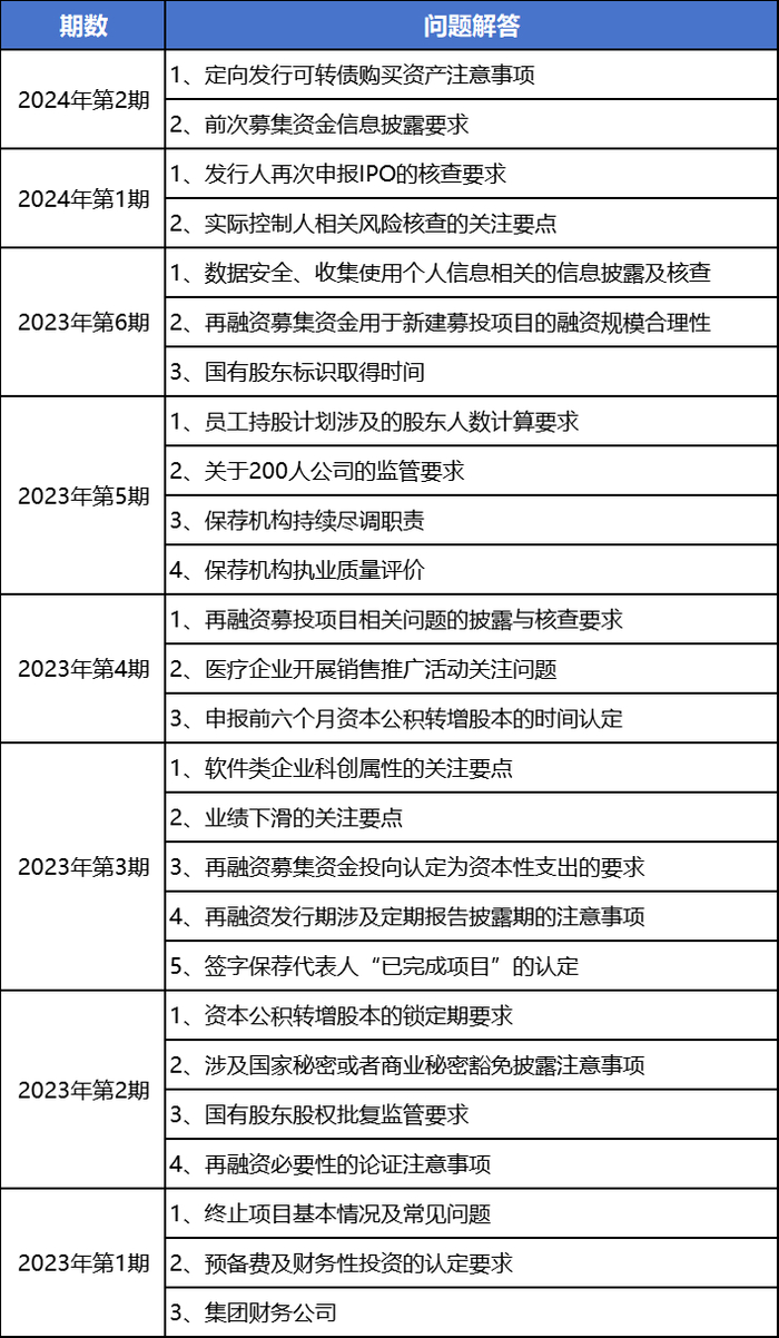 2023年2月上交所实施全面注册制后,将原分期发布的《科创板发行上市审核动态》变更为《上交所发行上市审核动态》。2023年至今,《上交所发行上市审核动态》已发布8期,本文将这8期中26个“问题解答”汇总,供读者们分享、收藏。