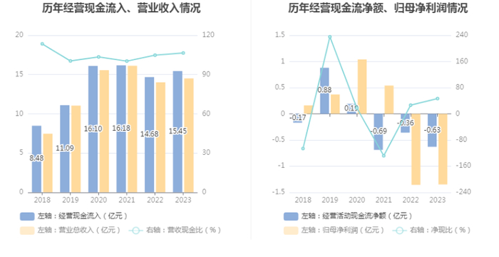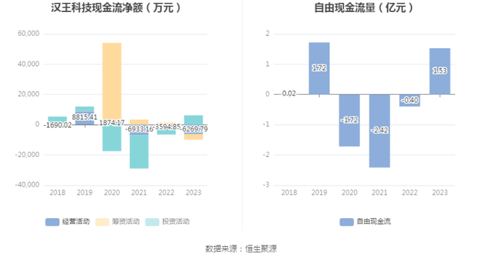 进一步统计发现,2023年公司自由现金流为1.53亿元,上年同期为-0.40亿元。