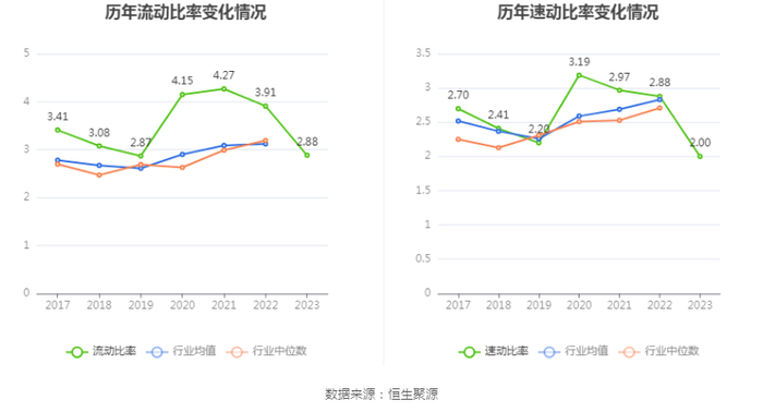 2023年,公司流动比率为2.88,速动比率为2.00。
