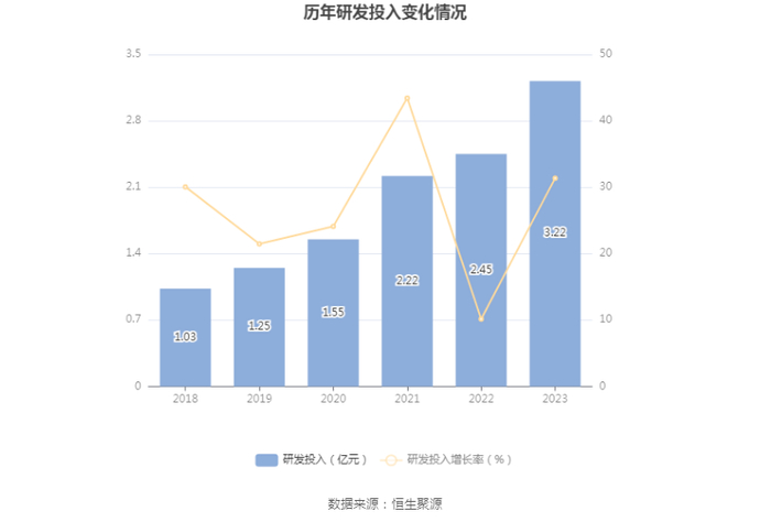 2023年全年,公司研发投入金额为3.22亿元,同比增长31.37%;研发投入占营业收入比例为22.17%,相比上年同期上升4.69个百分点。此外,公司全年研发投入资本化率为31.64%。
