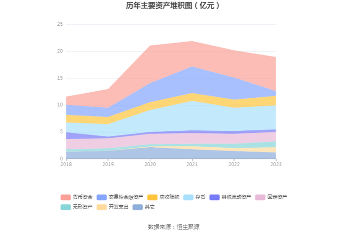 资产重大变化方面,截至2023年年末,公司交易性金融资产较上年末减少77.85%,占公司总资产比重下降15.60个百分点;货币资金较上年末增加25.36%,占公司总资产比重上升8.37个百分点;开发支出较上年末增加75.77%,占公司总资产比重上升2.37个百分点;存货较上年末增加3.59%,占公司总资产比重上升2.21个百分点。