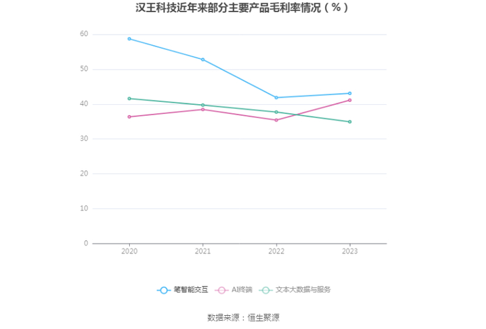 分产品看,笔智能交互、AI终端、文本大数据与服务2023年毛利率分别为43.10%、41.12%、34.91%。