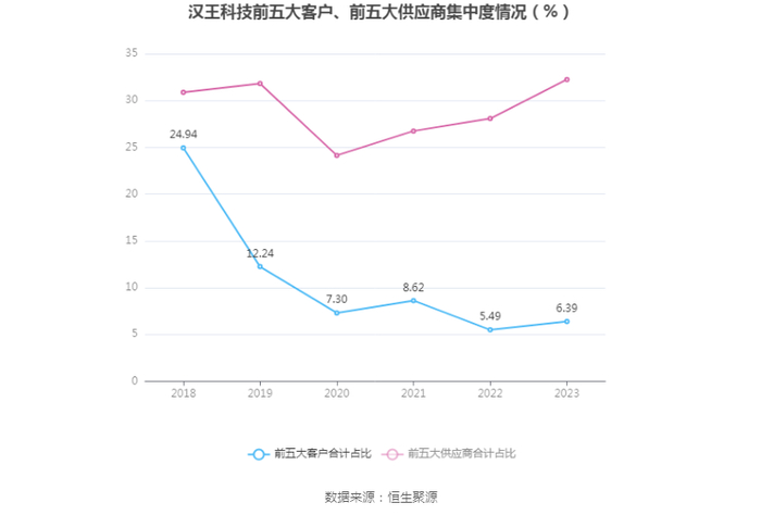 报告期内,公司前五大客户合计销售金额0.93亿元,占总销售金额比例为6.39%,公司前五名供应商合计采购金额1.97亿元,占年度采购总额比例为32.25%。
