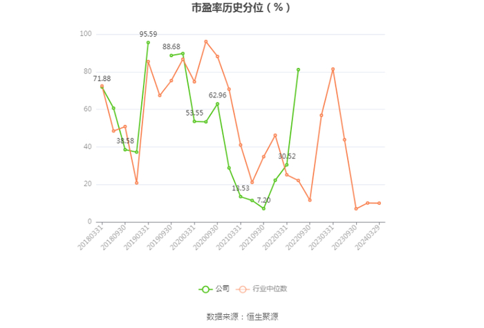 市盈率为负时,不显示当期分位数,会导致折线图中断。