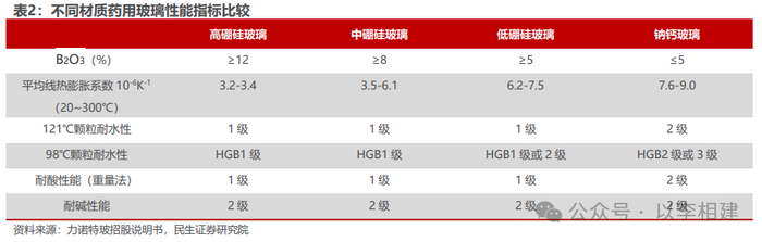 2.1.1 药玻四项分类:高/中/低硼硅玻璃、纳钙玻璃