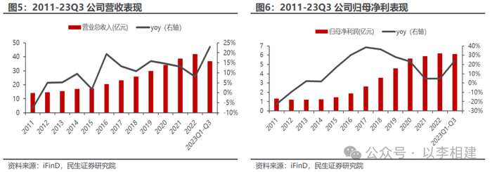 2011-2022年公司收入CAGR为10.49%,归母净利CAGR为15.02%,整体保持稳健增长,其中: