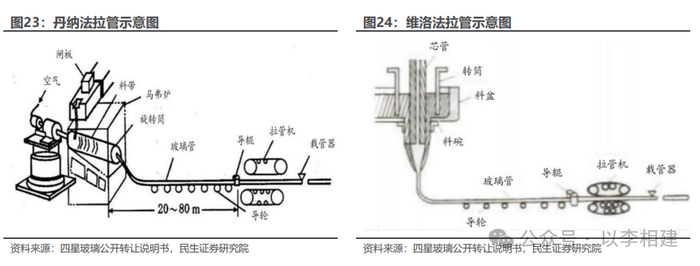 玻管是将熔融玻璃液拉制成断面为圆形或异型的空腔玻璃制品。国内外药用玻璃管广泛应用的拉制方法为丹纳水平拉管法,该生产工艺、生产设备以及操作方法已较为成熟,适用于制造外径2-70mm玻璃管、日熔量大于10T/D窑炉。目前国内采用丹纳法的中硼硅玻璃管厂商受旋转管不稳定现象影响,在旋转管等耐材腐蚀后周期性更换劳动强度大、玻管生产不连贯停机时间长、更换检修成本高,导致玻璃管质量、良率与国际巨头仍存较大差距。中硼硅玻璃管生产壁垒主要体现在技术壁垒和资金壁垒上。