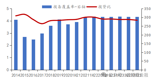 盈利增速略降。2023年归母净利润增速为3.90%,较3Q23下降了1.07个百分点。2023年贷款减值损失1389亿元,同比减少21亿元,拨备计提同比略降。