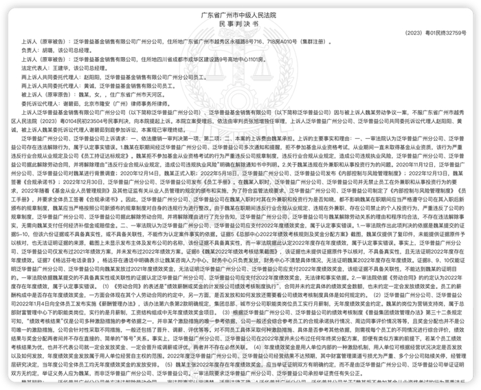 近日泛华普益和其广州分公司,由于不服广东省广州市越秀区人民法院判决其与魏某劳动争议一案结果,因此向本院提起上诉。上诉人泛华普益认为一审中法院认为公司存在违法解除行为,属于认定事实错误。